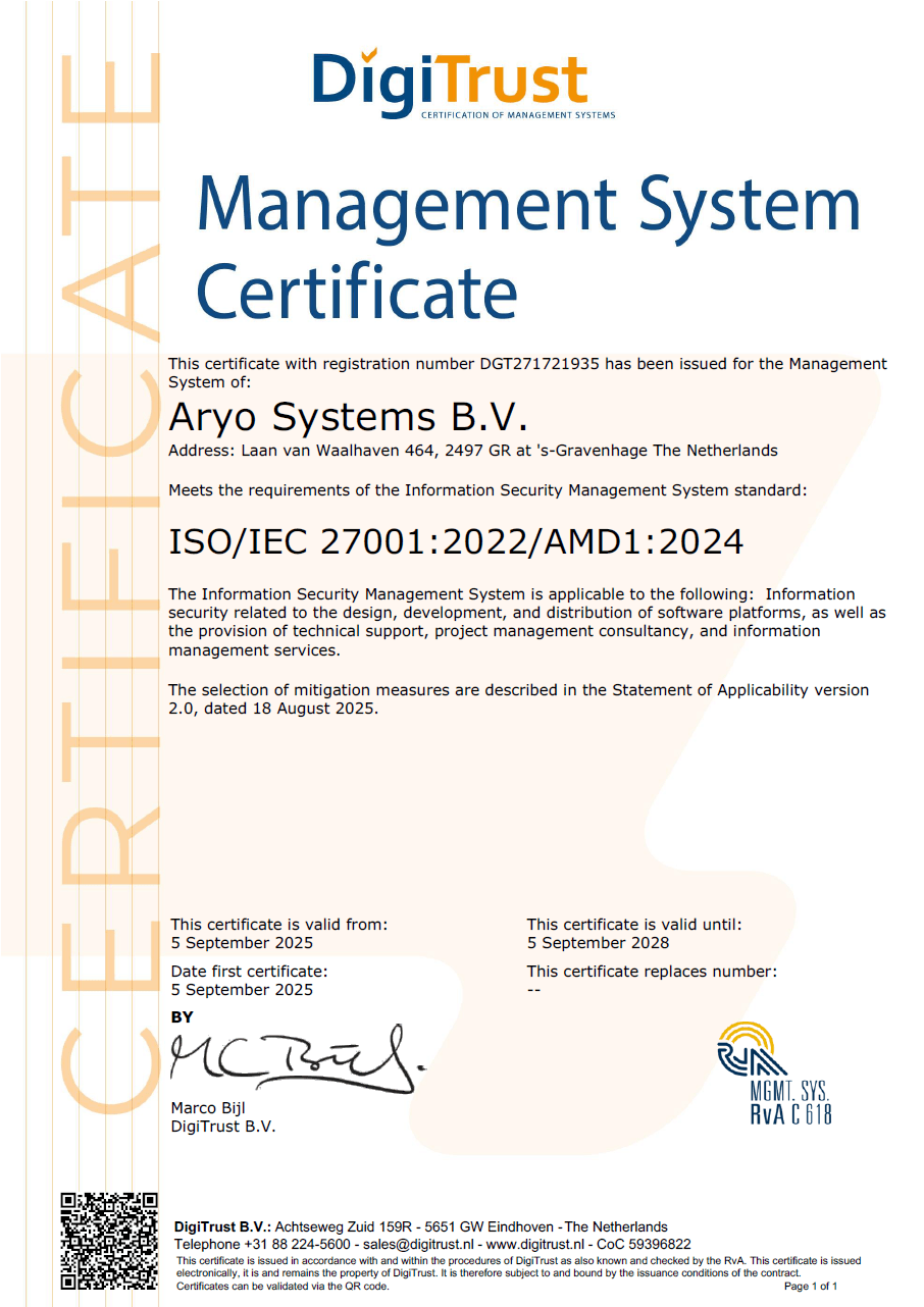 Vul ons formulier in en een van de Aryo Systems medewerkers neemt zo snel mogelijk contact met u op.